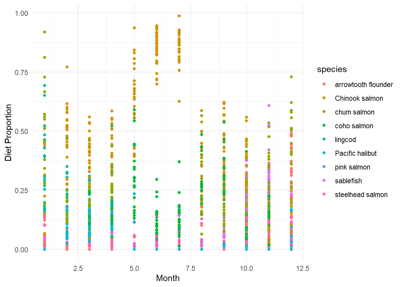 labs(x = "Month", y = "Proportion of Chinook in Diet") +