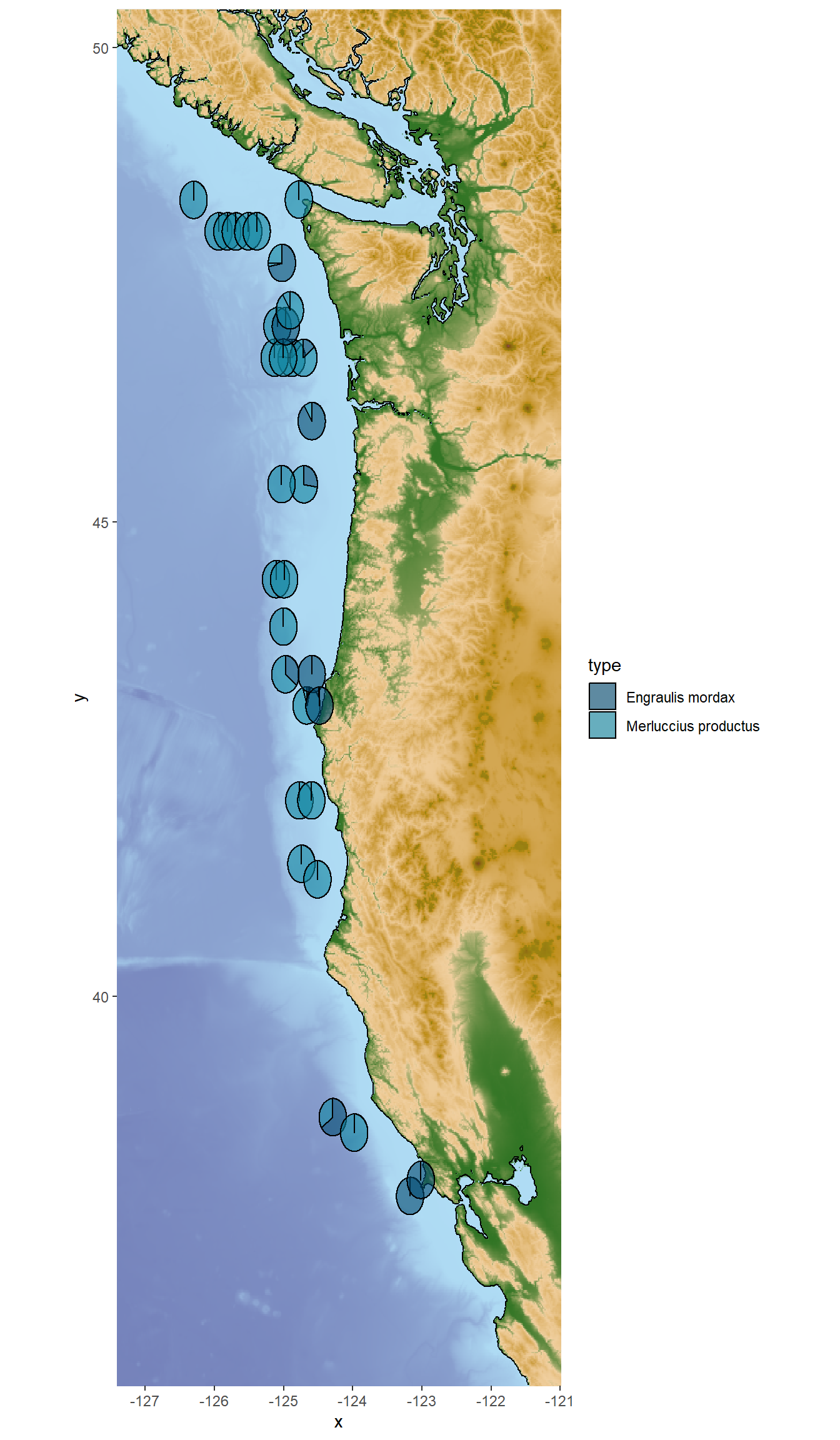 For this plot option you will need to install the `scatterpie` and `ggnewscale` packages if you haven't already! This code also uses the `PNWColors` package for color palettes.